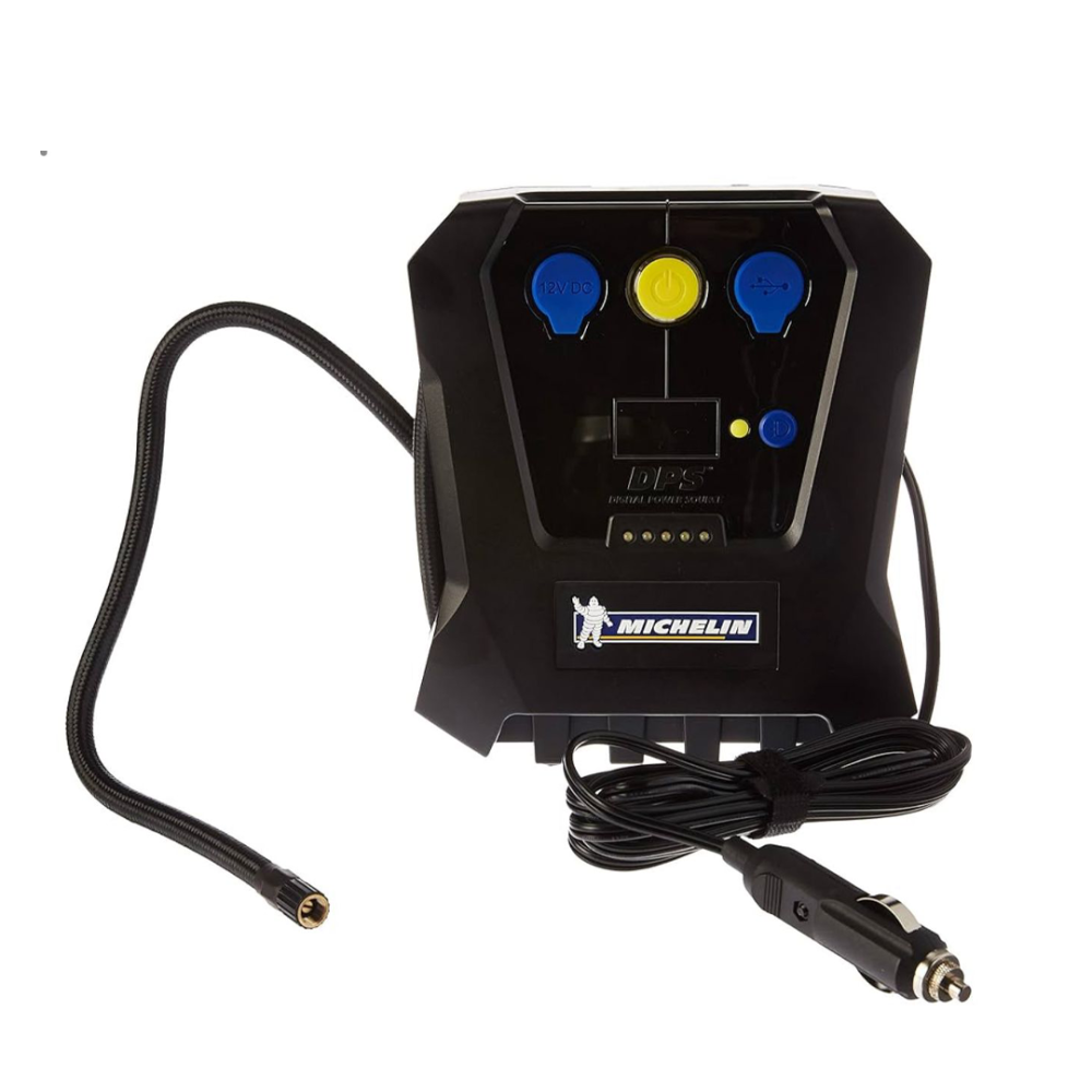 يأتي منفخ اطارات محمول من Michelin بطول 20 سم فقط، مما يجعله خيارًا عمليًا للطوارئ والسفر. يحتوي على شاشة رقمية واضحة تُظهر قياس الضغط بدقة، ومنافذ 12V يمكن من خلالها تشغيل الأجهزة الصغيرة داخل السيارة.